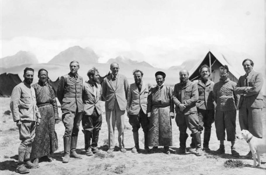 V polovivě roku 1938 dorazila do Tibetu pochybná výprava nacistických vědců, pátrajících po árijských kořenech. V době jejich příchodu měla Lhasa asi 25 tisíc obyvatel a v okolních buddhistických klášterech žil zhruba stejný počet mnichů. Pobyt výzkumníků se ovšem zřejmě značně lišil od obrázku vykresleného Němci, podle nějž „velitelé sta věd“ – jak je Tibeťané nazývali – diskutovali s místními o jejich kultuře a s pokorou poznávali tamní zvyky. „Setkání východních a západních svastiků“ připomínalo víc než co jiného bujaré pitky, kdy alkohol tekl proudem za zvuku německých písní pouštěných z gramofonu.