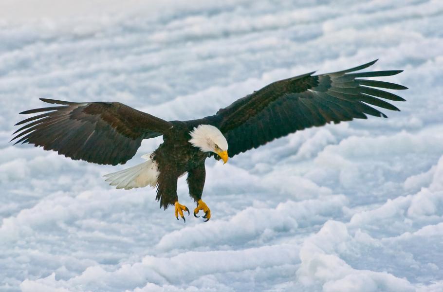 Jako symbol USA byl orel bělohlavý (Haliaeetus leucocephalus) zvolen v roce 1782 pro svoji dlouhověkost, sílu, majestátní vzezření a svobodu, díky níž ještě na začátku minulého století v hojném počtu křižoval oblohu nad jezery a vodními toky americké přírody. Pak si ale začala vybírat svou daň postupná ztráta přirozeného prostředí a střílení orlů jako škodné zvěře, které se stalo koníčkem mnohých samozvaných lovců. Jen na Aljašce bylo takto zabito více než 100 000 jedinců. Místní rybáři považovali orly za hrozbu pro lososy, a tak je systematicky a bez skrupulí vybíjeli.