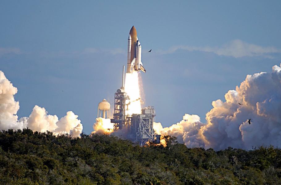 Raketoplán Columbia odstartoval k misi STS-107 dne 16. ledna 2003. (foto: Wikimedia Commons, NASA, CC0)