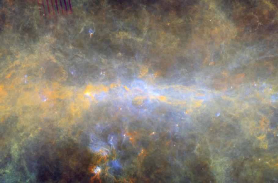 Herschelova vesmírná observatoř pořídila ohromující panoramatický obraz Mléčné dráhy. Snímek složený ze stovek hodin pozorování zahrnuje přibližně 40 % roviny Mléčné dráhy. Impozantní obraz zachycuje bílé obláčky vesmírného prachu a plynu, stejně jako fialově a modře zářící oblasti rodících se nových hvězd. Soubor obsahuje i několik opravdových klenotů naší Galaxie – Orlí mlhovinu, mlhovinu Kočičí tlapky nebo Humří mlhovinu pro svůj tvar přezdívanou mlhovina Válka a Mír.