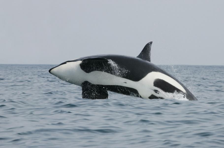 Při výskoku nad hladinu je možné zahlédnout bílo-černou kresbu na břiše kosatky. (foto: Shutterstock)