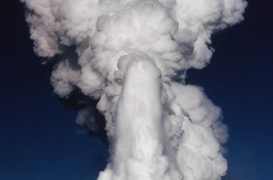 Obzvlášť silná erupce gejzíru, který dokáže vyvrhnout proudy vařící vody až do výšky nad 50 metrů