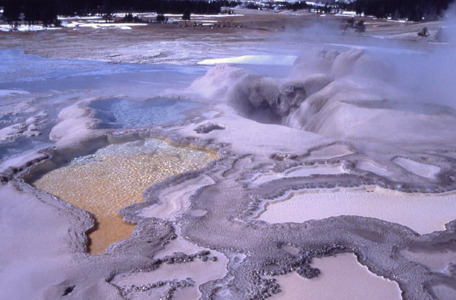 Při stoupání vzhůru voda částečně rozpouští stěny puklin a zvětšuje je. Současně se ale při stoupání k povrchu země ochlazuje a část minerálů z ní se postupně usazuje na stěnách puklin. U některých vývěrů se může i stát, že usazující se minerály pukliny zcela zaplní a ucpou. Gejzír tak zaniká, ale v případě Yellowstonu se průchodnost puklin čas od času obnovuje častými zemětřesnými záchvěvy země.