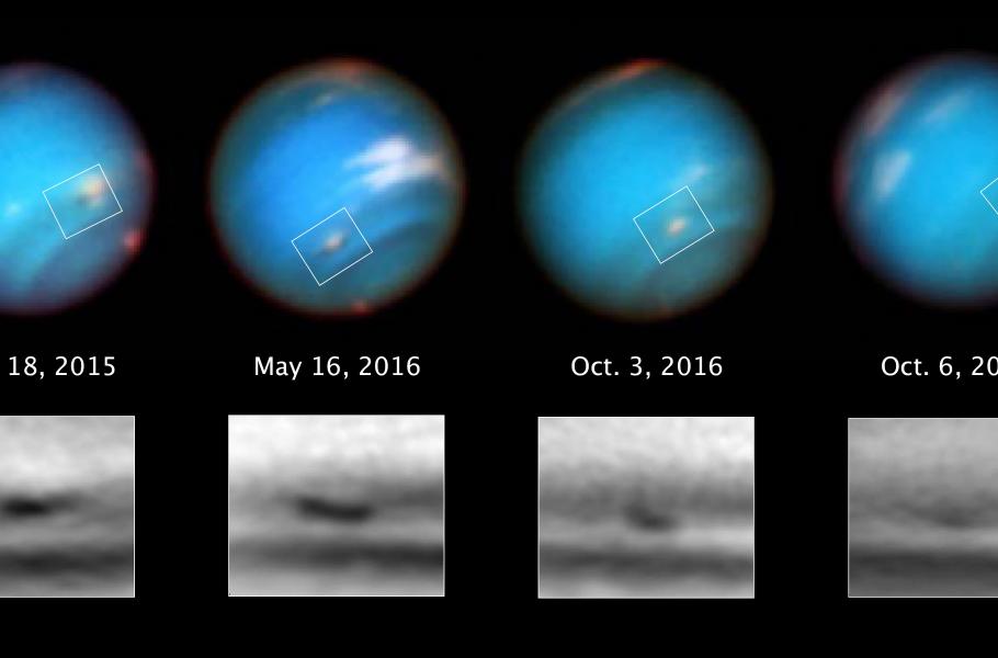 Neptun se nachází 4,5 miliardy kilometrů od Slunce a v jeho atmosféře panuje teplota −218 °C. Rozhodně se však nejedná o neměnnou „zmrzlou“ planetu, neboť i v tak velké vzdálenosti má sluneční energie svůj vliv. Kromě toho disponuje planeta rovněž vlastními zdroji a vyzařuje přibližně 2,6× více energie, než dostává od naší hvězdy. V její atmosféře navíc můžeme pozorovat velmi bouřlivé počasí. Když v roce 1989 prolétala kolem Neptunu kosmická sonda Voyager 2, změřila tamní maximální rychlost větrů na 2 400 km/h (což představuje více než dvojnásobek rychlosti zvuku). V té době přitom panovalo na jižní polokouli léto. Vznikající víry dělají z Neptunu bouřlivou planetu a v porovnání s tamním prouděním jsou pozemské hurikány jen slabým vánkem.