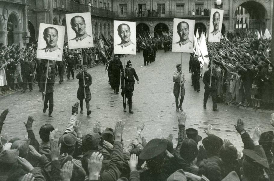 Demonstrace ve španělské Salamance na oslavu obsazení města Gijón jednotkami generála Franca. (foto: Wikimedia Commons, CC0 1.0)