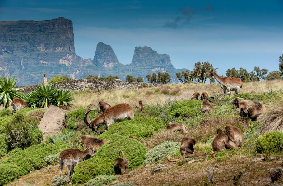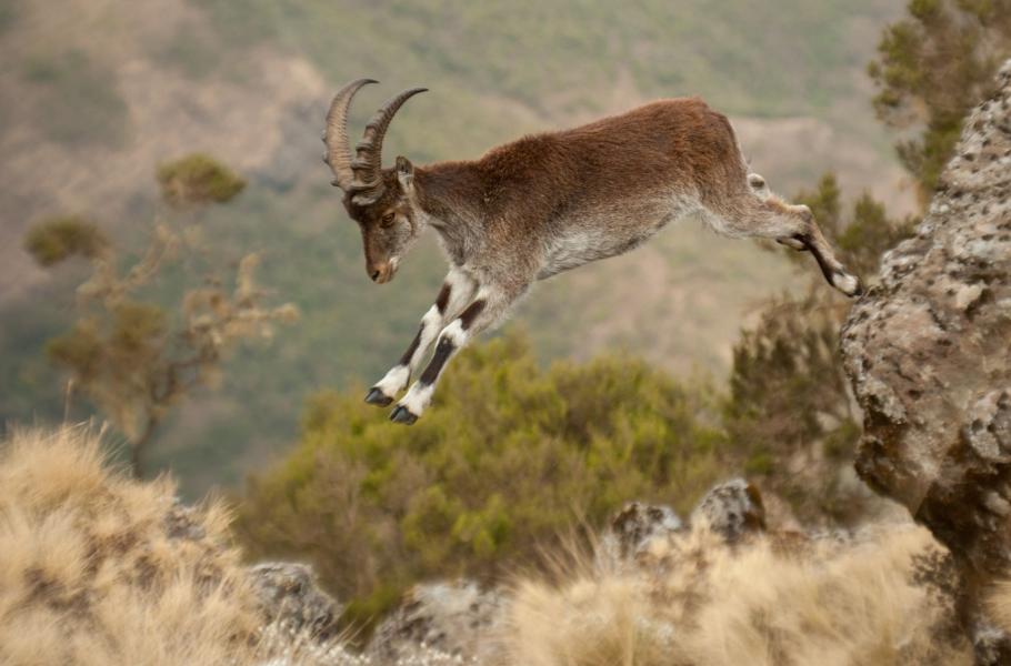 Pozorovat kozorožce walia s dlouhými masivními rohy na skalních ochozech Simienských hor je neuvěřitelný zážitek. Jejich výrazná silueta jaksi patří k rozeklaným a typicky ostře řezaným profilům etiopského horského reliéfu