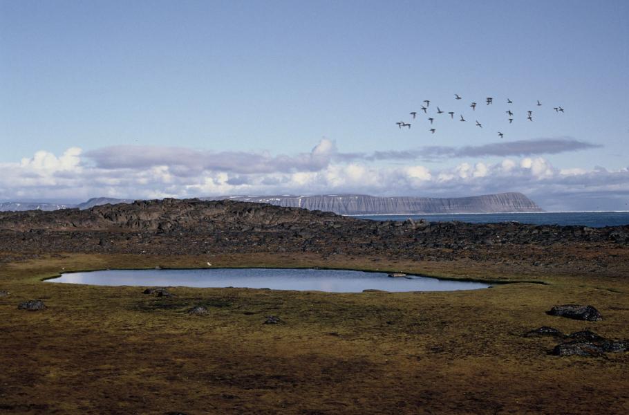 Je pozdní dopoledne a já se vydávám do vnitrozemí ostrova. Proplétám se mezi balvany a tu a tam míjím ležící velrybí žebra, která se bůhvíjak dostala až téměř pod třicetimetrový vrchol ostrova. Právě sem mířím, abych se dostal co nejblíž k ležení mrožů v nedaleké zátoce. Nemusím se pohybovat tiše. Skrumáží namodralých ledových ker nashromážděných větrem na západní straně ostrova totiž zmítají dlouhé oceánské vlny, což vyvolává neustálý dunivý rachot, který vše přehlušuje. Západní vítr pak přináší i hutný „chlévský“ pach z mroží zátoky. A když cítím já je, nemohou mroži cítit mne.