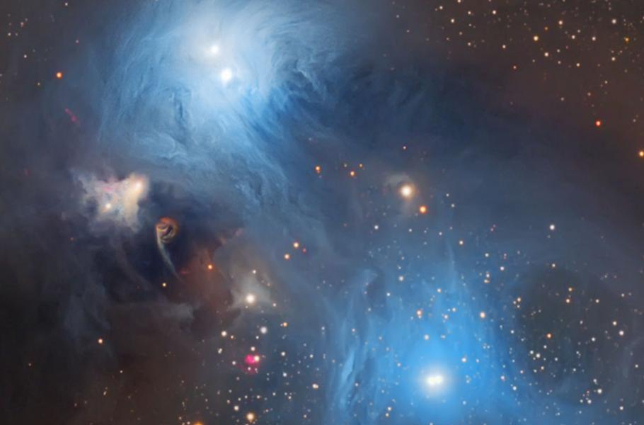 Teleskopickou vyhlídku u severní hranice Jižní koruny ve vzdálenosti méně než 500 světelných let obývají modrá prachová oblaka a mladé energetické hvězdy. Světlo ze vzdálenějších hvězd v Mléčné dráze cloní prachová mračna. Světlo z jasných modrých hvězd v této oblasti se odráží od kosmického prachu a vytváří charakteristické modré světlo, jak je vidět ve výrazném komplexu reflexních mlhovin katalogizovaných jako NGC 6726, 6727 a IC 4812.