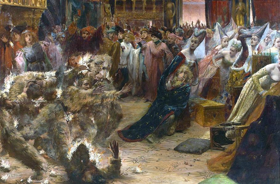 Bál ohnivců na olejomalbě Georgese Rochegrosse (1859 až 1938) z druhé poloviny 19. století. (ilustrace: Wikimedia Commons, Georges Rochegrosse, CC0)