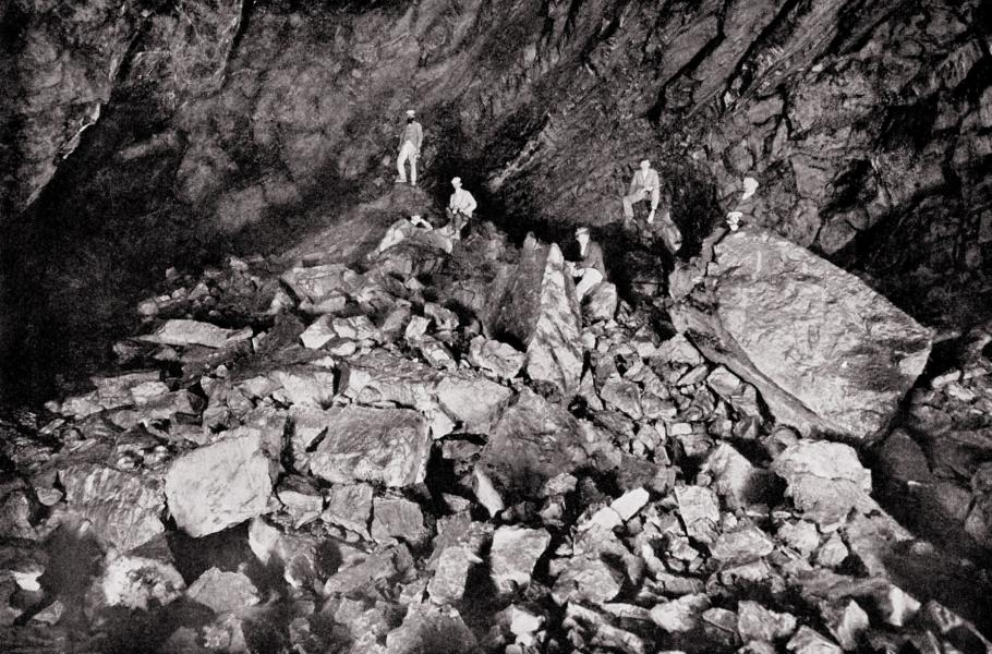„Kučera upírá na mne tupě vypoulené oči a jeho třesoucí se ruka udržovala jen stěží prskající oharek. Znova nazpět do sálu, napravo první, druhou, třetí chodbou, opět se drápeme na hromadu balvanů, která se stala pro mne opravdovou Golgotou. Skok na skok, pád na pád, až jsem nadobro zapadl do hluboké propadliny. Ležím tu s poraněnou rukou bolestně sevřen a vidím, jak Kučera vytřepává z připálené ruky dohořívající rozlitý oharek. Nato rozestřela se kolem nás čirá tma, mne obešla celá hrůza temnosti.“
