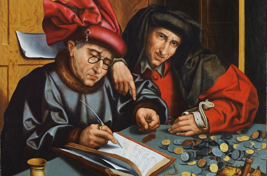 Na složitém měnovém systému vydělávali tradičně směnárníci, bez nichž by mezinárodní obchod nemohl fungovat. (zdroj: Wikimedia Commons, Marinus van Reymerswaele, PDM 1.0)
