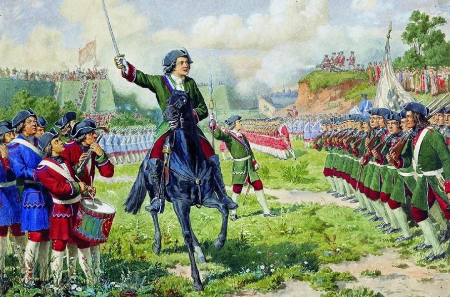 Již v dětství projevoval ruský panovník Petr Veliký při hrách na vojáky vůdčí schopnosti, houževnatost, odhodlání a výdrž. Jakmile se chopil vlády, vrhl se s nadšením do válečných dobrodružství...