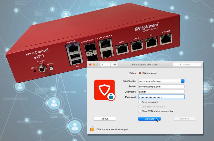 Jedním nejpopulárnějších VPN řešení je u nás Kerio Control, které běžný uživatel dokáže nastavit během několika minut a ihned bezpečně komunikovat se systémy svého zaměstnavatele. Navíc Kerio Control, u nás dodávaný společností GFI Software, obsahuje další bezpečnostní funkce jako např. síťový firewall, ochranu proti virům a malwaru, či filtrování webových stránek zamezující v přístupu na nakažené weby. Tím poskytuje pracovníkům na home office všechny základní nástroje bezpečné a efektivní práce na dálku.