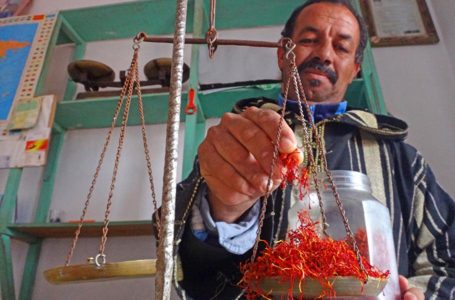 „Šafránu říkáme červené zlato. Proč? Protože je to nejdražší rostlina, která se používá jako koření,“ vysvětluje obchodnice Rašida Baha. „A proč je tak drahý? Už jenom kvůli tomu, jak se pěstuje. Musíte si dávat pozor a pěstovat jej za určitých podmínek. Druhý problém je, že nejsou lidé, kteří by jej sklízeli. Většina mladých emigruje, na polích pracují jen starší ženy. A třetí důvodem je fakt, že květ šafránu je velmi křehký. Potřebuje jemnost a nikdo není při zacházení s touto květinou tak jemný jako žena.“