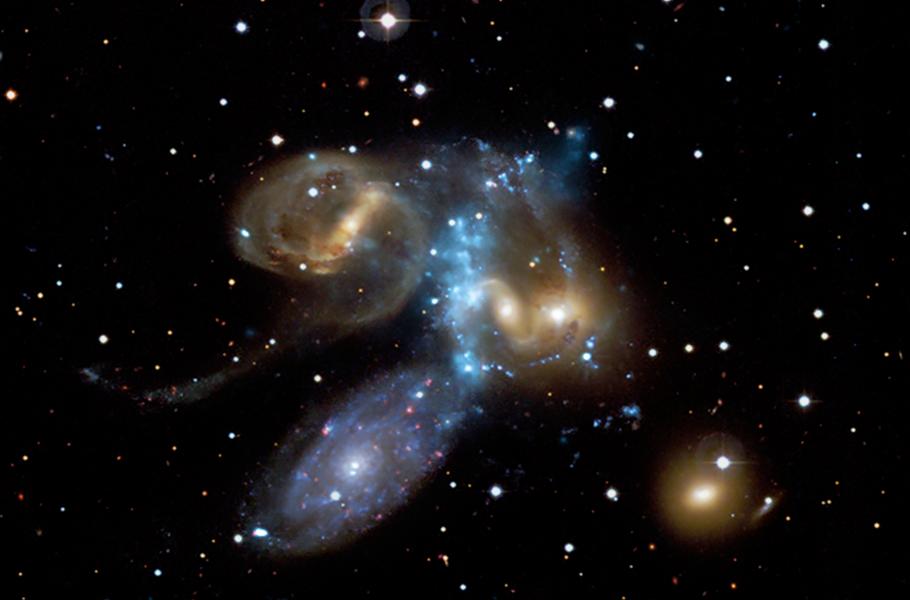 Nedávno si tuto skupinu galaxií vzal na mušku čínský radioteleskop s největší anténou na světě, čili FAST (Five-hundred-meter Aperture Spherical Telescope), a přinesl zajímavý objev. Kolem galaxií Stephanova kvintetu se rozkládá monumentální oblak atomárního vodíku, který je doposud největší strukturou tohoto typu, jaké jsme zatím ve vesmíru pozorovali.