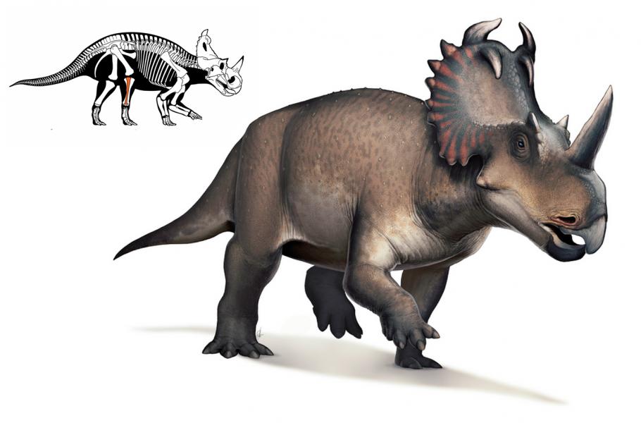 Tímto dinosaurem je velký ceratopsidní býložravec Centrosaurus apertus. Nádor byl objeven v lýtkové kosti centrosaura, která byla nalezena v roce 1989, na lokalitě Dinosaur Provincial Park v kanadské Albertě. Vědci nádor původně považovali za částečně zhojené poranění kosti. Až v roce 2017 si David Evans z Royal Ontario Museum všiml, že je na kosti něco divného a že si zaslouží detailní výzkum. Snímkování výpočetní tomografií s vysokým rozlišením poté odhalilo zhoubný kostní nádor.