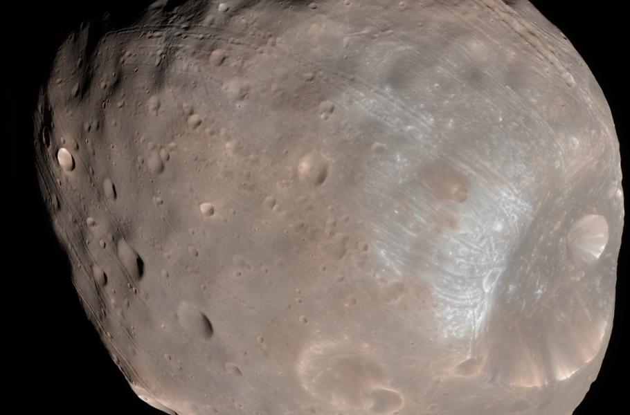 Kolem Marsu obíhají dva malé měsíce Phobos a Deimos, přičemž se s největší pravděpodobností jedná o zachycené planetky z hlavního pásu asteroidů mezi rudou planetou a Jupiterem. Větší Phobos o rozměrech 27 × 22 × 18 km se stal účastníkem mnoha kosmických srážek, což dokazují četné krátery na jeho povrchu. Při jedné kolizi vznikl též kráter Stickney o průměru 9,5 km – náraz byl tak silný, že málem skončil rozpadem měsíce.