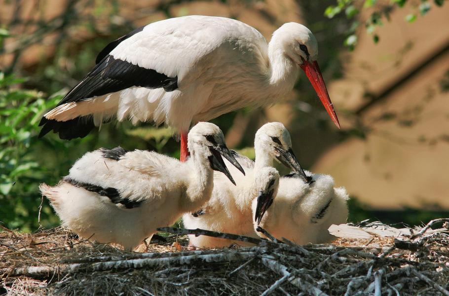 Druhorození potomci čápů bílých sice dostávají do vínku slabší hormonální doping, ale v životě si často vedou lépe než jejich prvorození sourozenci. (foto: Wikimedia Commons, Arjan Haverkamp, CC BY 2.0)