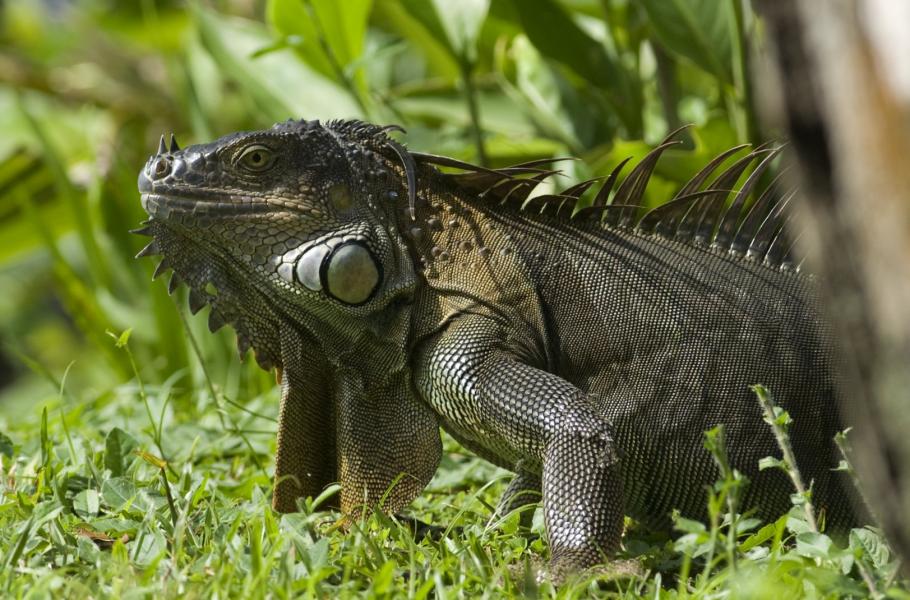 Právě tak před lety vypadalo mé první setkání s leguánem zeleným (Iguana iguana) ve volné přírodě. Leguáni byli bohužel v této oblasti velice plašší. Jsou zde sice chráněni, ale přesto je místní obyvatelé loví kvůli jejich údajně velice chutnému masu. Jak píše cestovatel Schomburgh citovaný v Brehmově životě zvířat: „Ač je vzhled tohoto zvířete velmi odpuzující, je jeho maso přece nejkřehčí, jaké si lze mysliti. Stejně chutná jsou i jeho vejce.“ Leguánům zeleným se proto také v některých zemích říká stromové kuře.