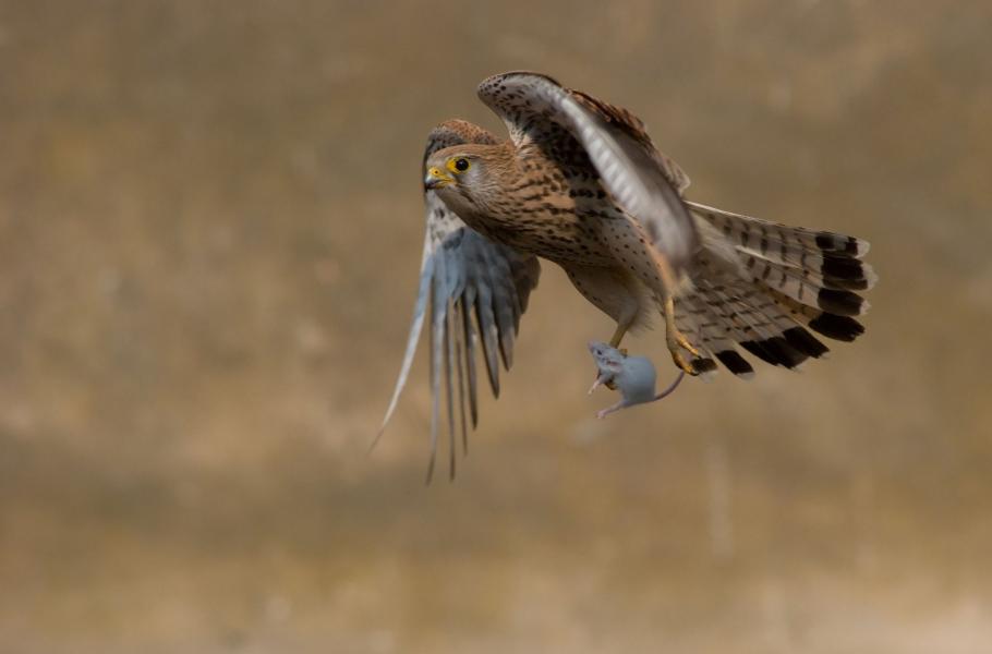 Rozhodl jsem se tu a tam jim zpestřit jídelníček. Nejprve jsem samici předhodil myš a ukryl se, aby mě neviděla. Prakticky okamžitě přilétla, dezorientovaného hlodavce ulovila a odnesla mláďatům. „Krmení krmiče“ jsem několikrát opakoval a začal jsem přemýšlet, jak bych lovícího dravce co nejlépe zachytil.