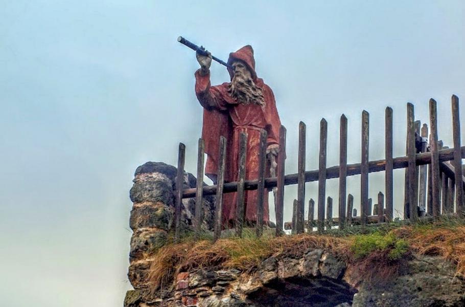 Socha slavného poustevníka Samuela Görnera na skalním hradu Sloup. Jeho život nakonec ukončili lapkové. (foto: Wikimedia Commons, VitVit, CC BY-SA 4.0)