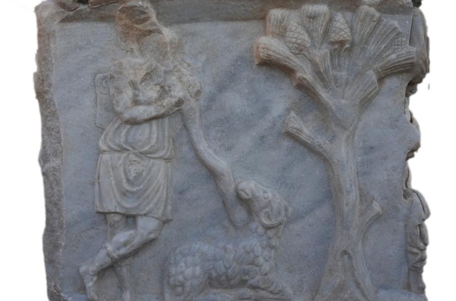 Zachovalá část sarkofágu s vyobrazeným Herkulem. (foto: Israel Antiquities Authority, Shatil Emmanuilov, CC BY-SA 4.0)