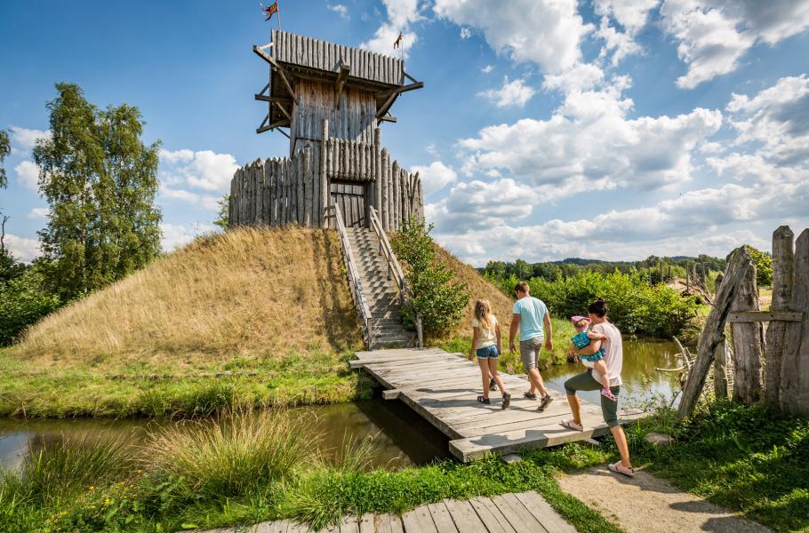 Historický park leží kousek od Tachova, jen pár kilometrů za hranicemi na německé straně, v městečku Bärnau. Návštěvníci se tu bez obav domluví česky, a to nejen v pokladně a restauraci, ale i při prohlídce parku. A zatímco si po oběde dáte kafe, děti můžou prozkoumat velké dřevěné hřiště hned vedle restaurace.
