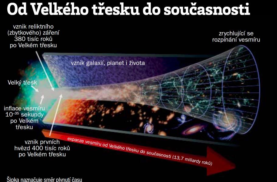 Dnes věříme, že vesmír vznikl z velmi hustého a horkého stavu: Máme tím na mysli teploty a hustoty naprosto se vymykající čemukoliv, co známe, či co si dokonce umíme představit. Současný model tzv. Velkého třesku pochází od George Gamowa, který z rodné Oděsy zamířil v 30. letech minulého století do USA, kde nakonec zakotvil na University of Colorado v Boulderu. Gamow se původně zabýval problematikou atomového jádra a podílel se na výpočtech, jež nám umožnily pochopit princip jaderného štěpení. Později se zaměřil na nukleosyntézu, tedy procesy směřující k tvorbě atomových jader. A právě tento výzkum jej dovedl k pochopení Velkého třesku. Společně s Ralphem Alpherem objevili způsob, jak se v horké „polévce“ raného kosmu mohla utvářet první jádra helia.