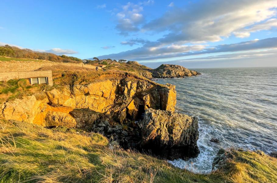 Ze začátku půjdete přes golfové hřiště, jehož přítomnost na zvlněném poloostrově nijak nepřekvapí, neboť tamní terén ke hře přímo vybízí. Golfisté jsou na návštěvníky zvyklí, přesto se určitě chovejte podle pokynů na tabulích podél stezky: Hřištěm se přesuňte ideálně rychle a tiše, sledujte trasu značenou bílými kameny a dávejte pozor na míčky – cedule vás dokonce upozorní na směr, odkud by mohl nějaký přiletět. Nepodceňte ani dobré oblečení, protože navzdory zdánlivě nízkým kopcům od moře často silně fouká.