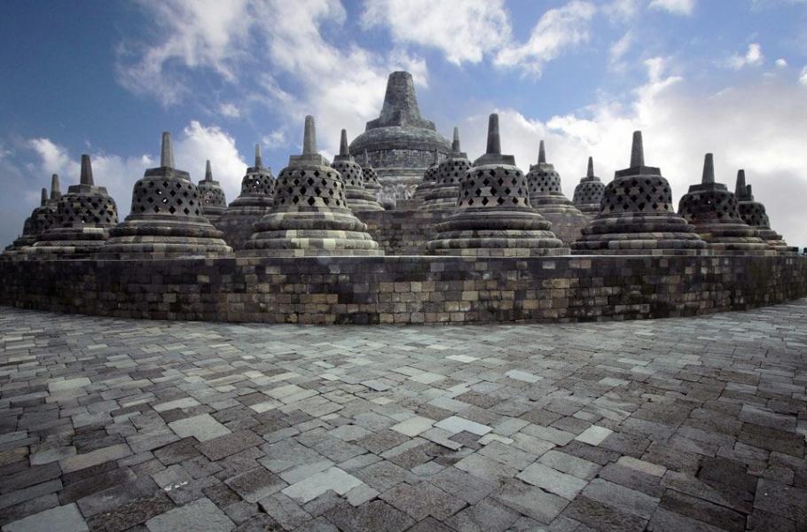 Chrám Borobudur se nachází v centrální části Jávy asi 40 km od města Yogyakarta v Indonésii. Je to největší a nejstarší buddhistický chrám na světě. Jedná se o velmi zajímavou stavbu postavenou na obdélníkové základně ve třech úrovních. První úroveň tvoří pyramidální základna s pěti čtvercovými terasami, druhá část je tvořena kuželem se třemi kruhovými plošinami a v horní části se nachází monumentální stupa. Jeho kouzlo a tajemnost je ještě více umocněno tropickým deštným pralesem, který Borobudur obklopuje. Jeho strategická pozice, majestátnost a velikost učinily tuto stavbu nejznámější turistickou atrakcí Jávy. Jeho fotky naleznete všude - na pohlednicích, turistických brožurách a plakátech.