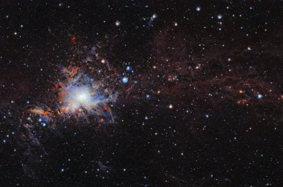 Molekulární oblak Orion A na složeném snímku teleskopu VISTA. (foto: ESO/VISION survey, CC BY-SA 4.0)