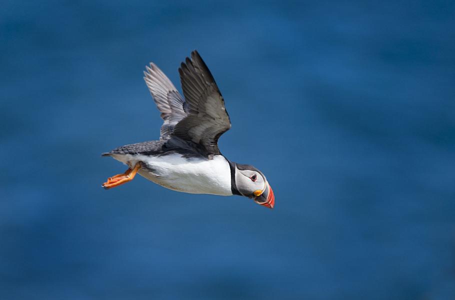 Dostat se zpátky na ostrov ovšem není tak jednoduché. Je totiž hlídán ostražitými racky, kteří dobře vědí, že obrat malé papuchalky je pro ně jednodušší, než shánět potravu na moři. Papuchalci proto často musejí ostrov několikrát obletět, aby správně načasovali přistání a unikli nenechavým zlodějům. Když jsem se snažil tyto okamžiky zachytit, často jsem slyšel jen svištění křídel, když mi ptáci prolétávali kolem hlavy jako malé stíhačky. Jakmile papuchalkové přistanou, bez meškání zalezou do nory. Tam se svými ratolestmi zůstávají několik minut, a teprve pak vylétnou zpět na moře. Když je v okolí ostrova nedostatek ryb, musejí se za potravou vydávat i několik desítek kilometrů daleko. Tento rytmus se po dobu hnízdění opakuje každý den. Až do doby, kdy jsou mláďata připravená vydat se sama na moře, což je kolem 50. dne jejich věku. Koncem června, někdy i později, opouštějí papuchalkové ostrov a vydávají se trávit zimu v severním Atlantiku – na jedno z nejdivočejších míst světa.