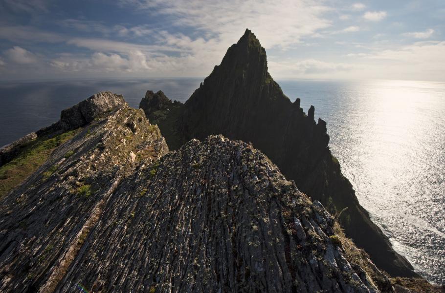 Když jsem před více než deseti lety poprvé projížděl kolem ostrovů Skelligs, které z vod severního Atlantiku ční jen pár kilometrů od pobřeží Irska, dvě rozeklané špičaté skály mě okamžitě uchvátily. Větší ostrov Skellig Michael je krásně žíhaný zelenými kouty mezi skalami a protkaný úzce vyšlapanými cestičkami vedoucími až k hřebenu. Menší Skellig Rock je vlastně velká strmá skála s hřebeny do bíla zbarvenými trusem druhé největší evropské kolonie terejů. Ostrovy přitom mají nejen atraktivní vzhled k dokonalosti dobarvený početnými koloniemi hnízdících mořských ptáků, ale i neobyčejnou historii.