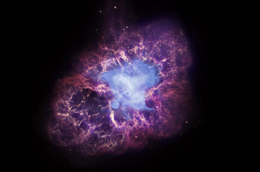 Krabí mlhovina je emisní mlhovina, která se nachází v souhvězdí Býka. Poprvé ji pozoroval John Bevis v roce 1731. Mlhovina je pozůstatkem supernovy SN 1054, kterou v roce 1054 pozorovali čínští a arabští astronomové. (foto: NASA, CXC, ESA, JPL-Caltec, CC BY-SA 4.0)