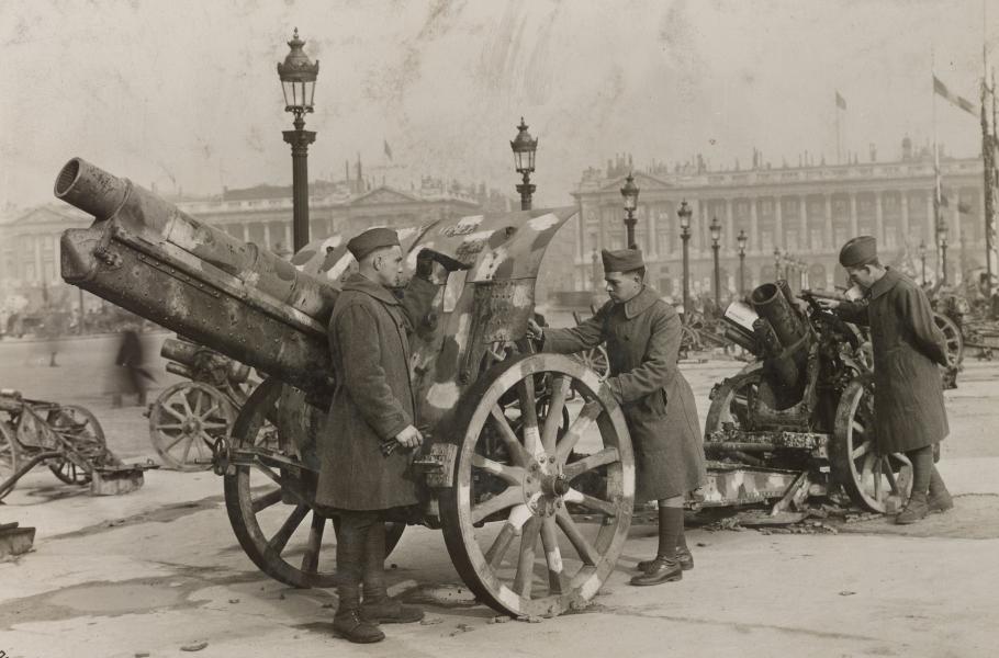 Američtí vojáci zkoumají ukořistěné německé kanony během letních ofenziv v roce 1918. (foto: Wikimedia Commons, NARA, PDM 1.0)