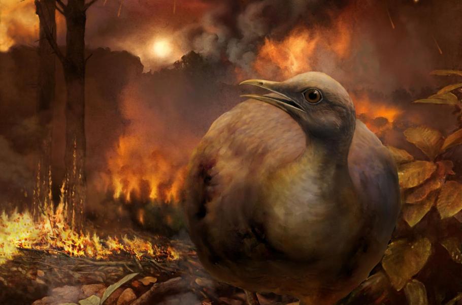 Podle nových analýz rostlinných fosilií z konce křídy pád meteoritu rozpoutal běsnící požáry, které sežehly většinu Země a spálily lesy. Při tom zahynuli nejen velcí dinosauři, ale i mnozí ptáci, především ti, kteří žili na stromech.