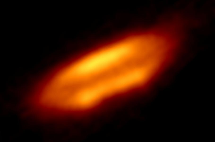 Bližší pohled na HH 212 odhaluje výrazný tmavší, chladnější prachový pás, který se táhne přes disk, směstnaný mezi dvěma jasnějšími oblastmi, které jsou ohřáté protohvězdou. Výsledek připomíná kosmický hamburger. Je to poprvé, co astronomové pozorovali podobný prachový pás v nejranějších fázích tvorby hvězd.