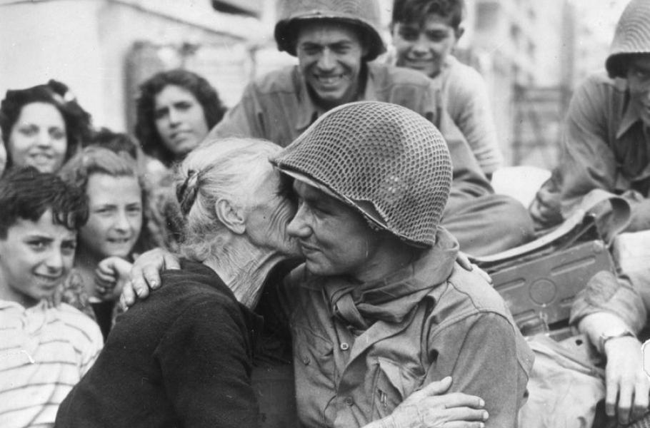 Nepřehlédnutelným a mnohdy velmi závažným tématem při pobytu vojáků na cizím území byl jejich vztah k místním ženám. Ten mohl mít mnoho podob, od hromadného znásilňování ze strany bezohledných dobyvatelů až po upřímná a láskyplná obětí a polibky pro osvoboditele.