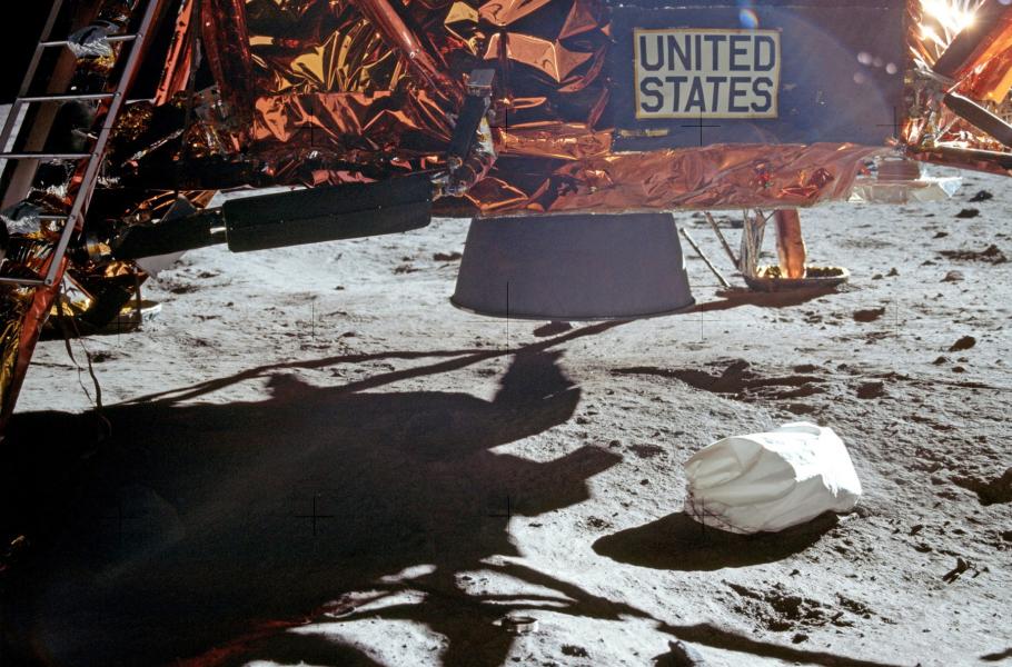 Pro někoho možná půjde o šokující zjištění, ale jako první předmět umístil Neil Armstrong na měsíční povrch… pytel s odpadky! Buzz Aldrin mu jej podal, když jeho parťák opustil průlez modulu Eagle a klečel na „verandě“ zajišťující přístup k žebříku, po němž měl sestoupit dolů. Armstrong pytel s prázdnými obaly od potravin a dalšími drobnostmi převzal a hodil na zem. Nedlouho poté, co otiskl svou stopu do věčného prachu, ho pak odkopl pod přistávací stupeň lunárního modulu, aby se jim nepletl pod nohy.