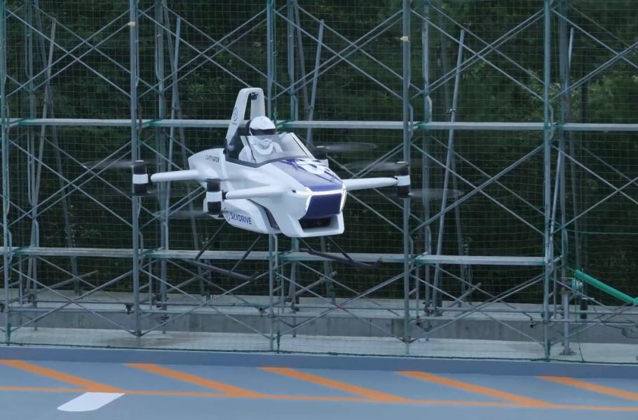 Japonská společnost SkyDrive provedla úspěšný test pilotovaného létajícího automobilu. Na videozáznamu, který společnost SkyDrive představila, se dopravní prostředek připomínající motocykl s vrtulemi vznesl do výšky zhruba jednoho až dvou metrů a zůstal ve vzduchu asi čtyři minuty.