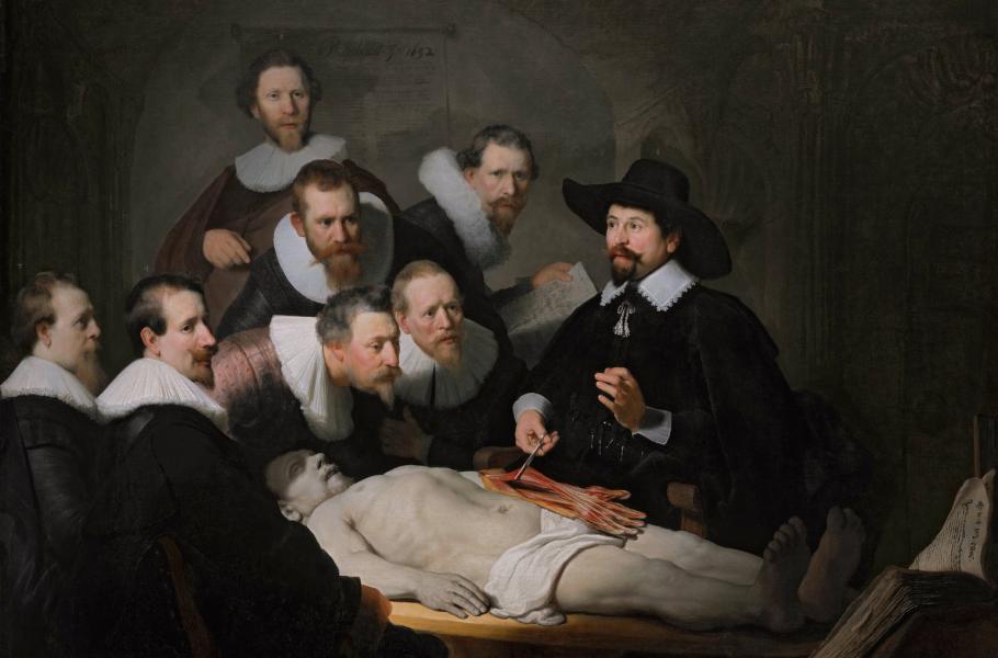 Nizozemské zákony v té době dovolovaly pouze jednu veřejnou pitvu za rok, což zvyšovalo slavnostní ráz události. Amsterodamský cech chirurgů proto nechával pravidelně zhotovit portrét zobrazující její průběh a v lednu 1632 pověřil zakázkou šestadvacetiletého rodáka z Leidenu, Rembrandta Harmenszoona. Výsledkem se stal obraz Anatomie doktora Tulpa, jedno z přelomových děl v umělcově kariéře. Malíř zobrazil takřka v životní velikosti hlavního městského chirurga Nicolaese Tulpa v okamžiku, kdy podává divákům výklad o svalstvu levé paže. Dochoval se dokonce záznam o nebožtíkovi: Šlo o jistého Arise Kindta, odsouzeného k smrti za loupežné přepadení a oběšeného jen krátce před pitvou.