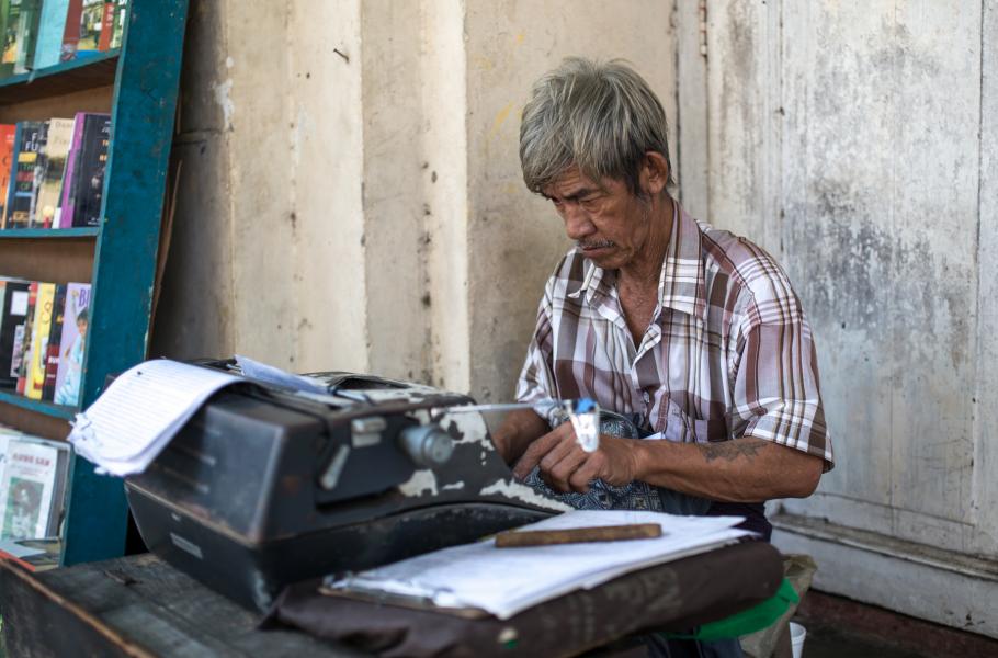 Kancelář v prachu ulice: Skomírající řemeslo barmských veřejných písařů