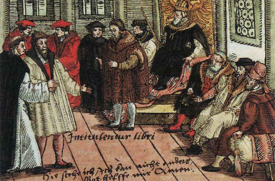 Dne 31. října 1517 augustiniánský mnich Martin Luther přibil na dveře chrámu v saském Wittenberku svých 95 tezí. Reagoval jimi zejména na tehdejší tíživou situaci v říši. Předmětem jeho tezí se stala zejména kritika obecně nepřijatelné odpustkové praxe a v širším kontextu také kritika světského panování církve, dále se v nich ostře vymezil proti instituci papežství. Luther mohl při šíření svého učení, které silně oslovilo soudobou společnost zejména ve východní části říše, využít postupně se rozšiřujícího knihtisku.