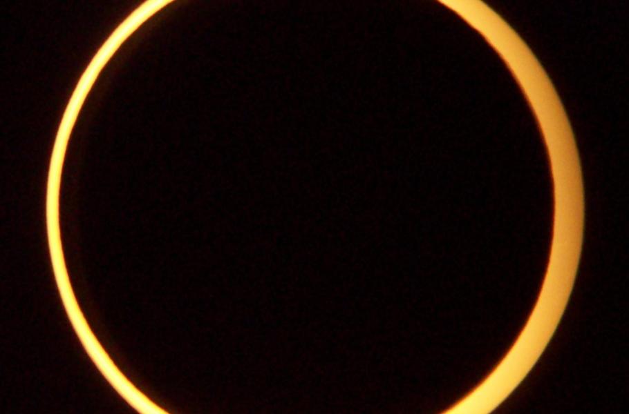 Zvláštním typem úplného zatmění Slunce je zatmění prstencové. V jeho maximální fázi vidíme na obloze sluneční kotouč v podobě úzkého prstence, přičemž vnitřní část disku zakrývá Měsíc, který je právě v novu. Náš souputník totiž obíhá kolem Země po eliptické dráze: Pokud se k planetě přiblíží nejvíc, může zcela překrýt sluneční kotouč a nastává úplné zatmění. Avšak nachází-li se od Země nejdál, je jeho úhlový průměr menší, a tudíž ke kompletnímu zakrytí Slunce nedostačuje. Výsledkem se pak stává prstencové zatmění.