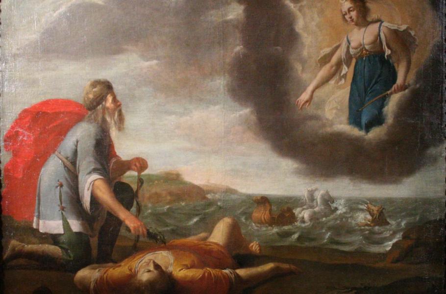 Asklépios křísící Hippolyta - syna athénského krále Thésea a jeho první manželky Amazonky Antiopy. (ilustrace: Wikimedia Commons, Jean Daret, CC BY-SA 3.0)