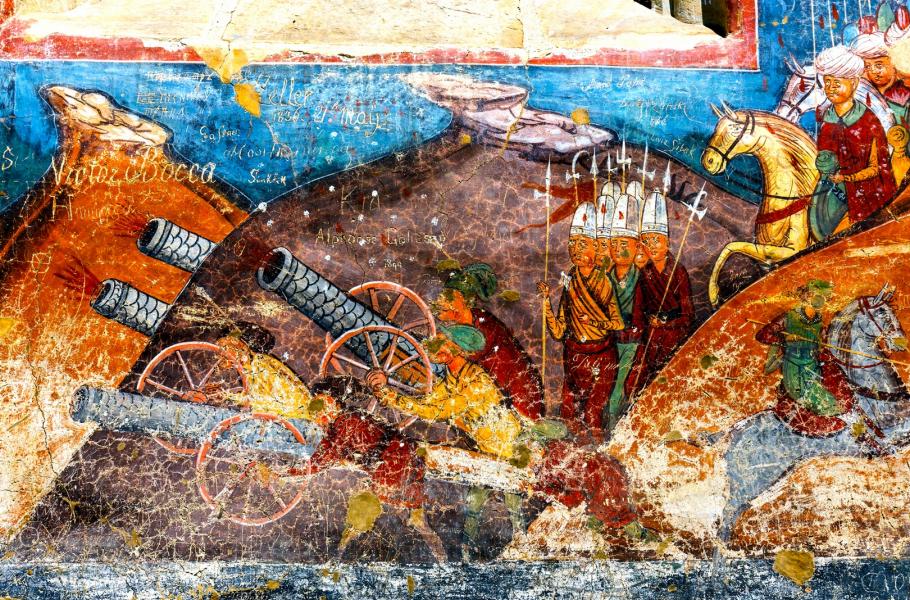 Jednotlivá témata maleb měla obvykle na vnějších i vnitřních zdech chrámů ustálené místo. Například fresku zakladatele kláštera naleznete nejčastěji vpravo na západní stěně hlavní lodě. Kromě vzdělávání negramotných věřících pomáhaly malby také odrážet rostoucí vliv protestantismu a především islámu. Právě proti nájezdům osmanských Turků pak okolo klášterních komplexů vznikalo opevnění.