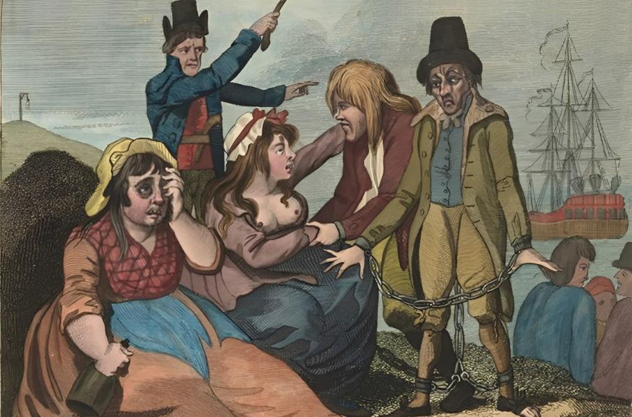 Co s tím? Britská justice nalezla spásné řešení v podobě Austrálie. V roce 1785 ji oficiálně klasifikovali jako zemi vhodnou pro přepravu odsouzených. Udělali z ní obří trestaneckou kolonii. A záhy tam posílali víc než třetinu všech odsouzených. Trestanecké kolonie existovaly už dřív – do Ameriky se posílali odsouzenci na sedm let. Ale Austrálie znamenala vyhoštění zpravidla na doživotí. Jednosměrnou jízdenku.