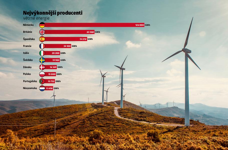 Které země Evropy patří mezi špičku ve využívání větrné energie?