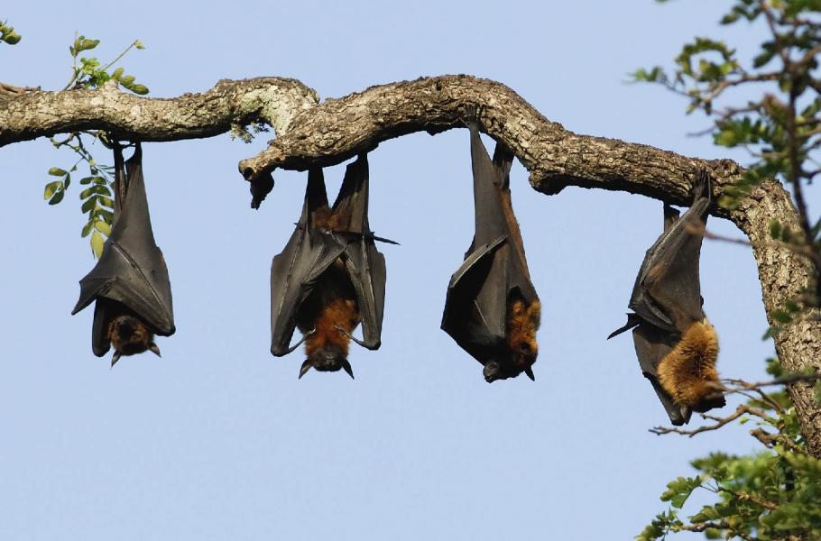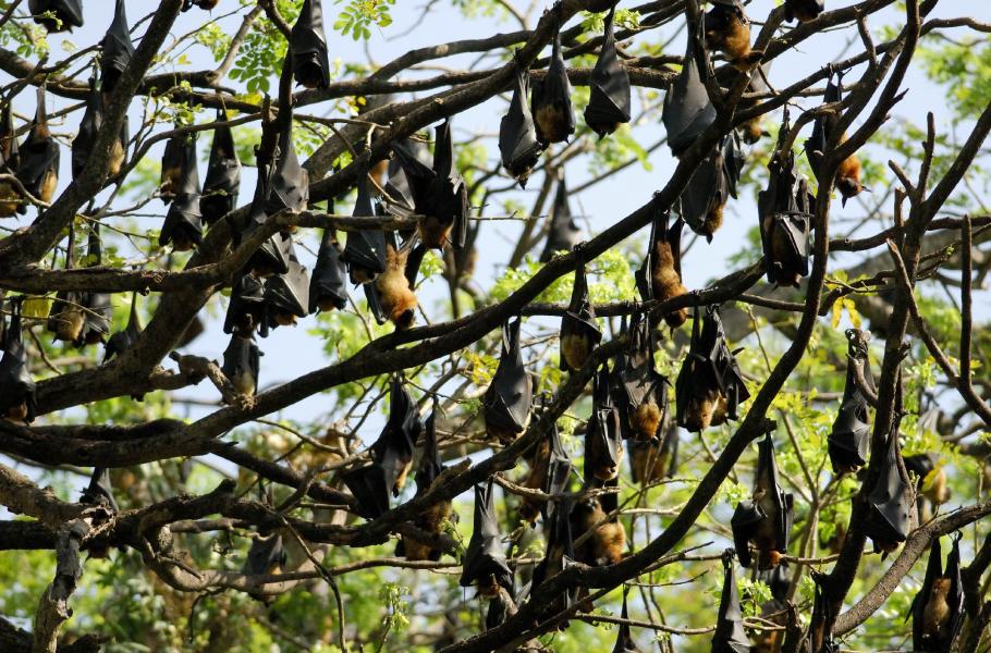 Dospělí samci kaloně indického (Pteropus giganteus) udržují jeden od druhého odstup. (foto: Jan Ševčík - se souhlasem k publikování)