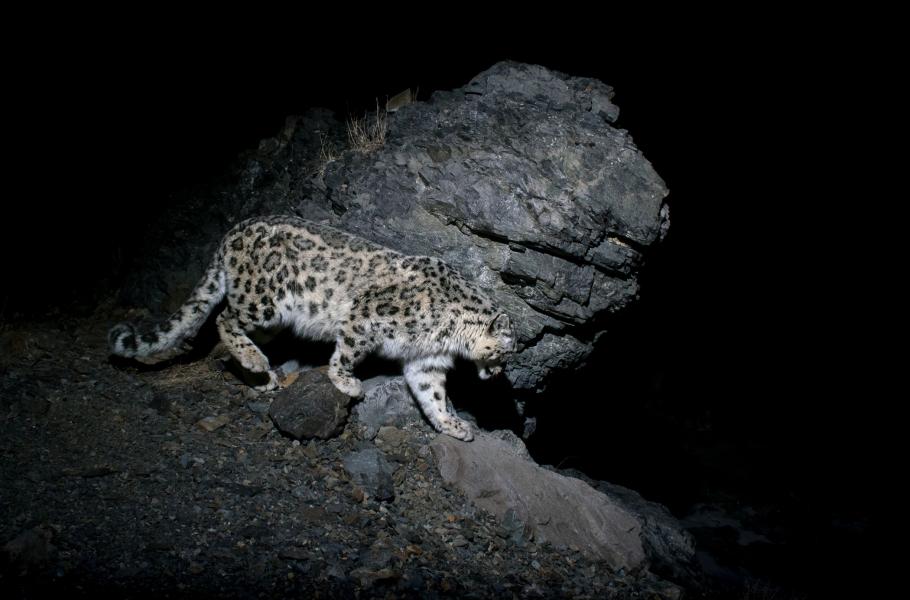 Moje první fotografie volně žijícího sněžného levharta ve vysokém rozlišení za pomoci podomácku zhotovené fotopasti. (foto: © Vladimír Čech ml.)